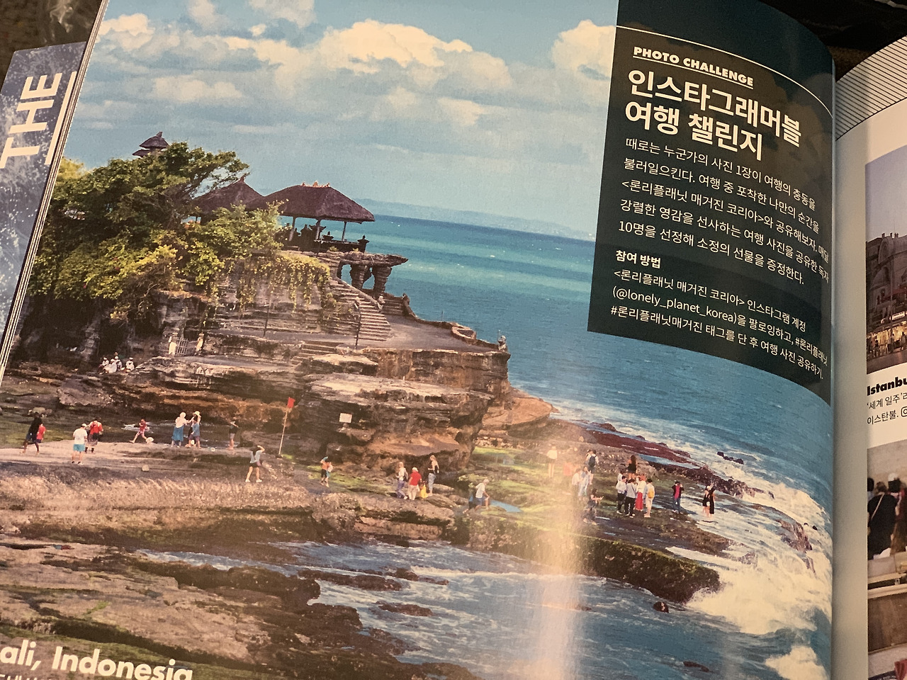 론리플래닛 2019년 9월 호. 인도네시아 따나롯 사원이 인스타그래머블 여행 챌린지 1등에 뽑혔다.
