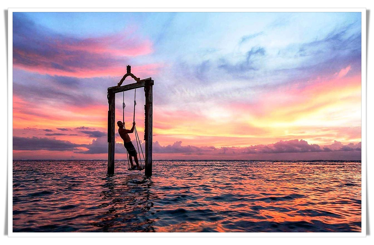 길리 트라왕안 옴박 선셋 앞 그네와 해변 승마