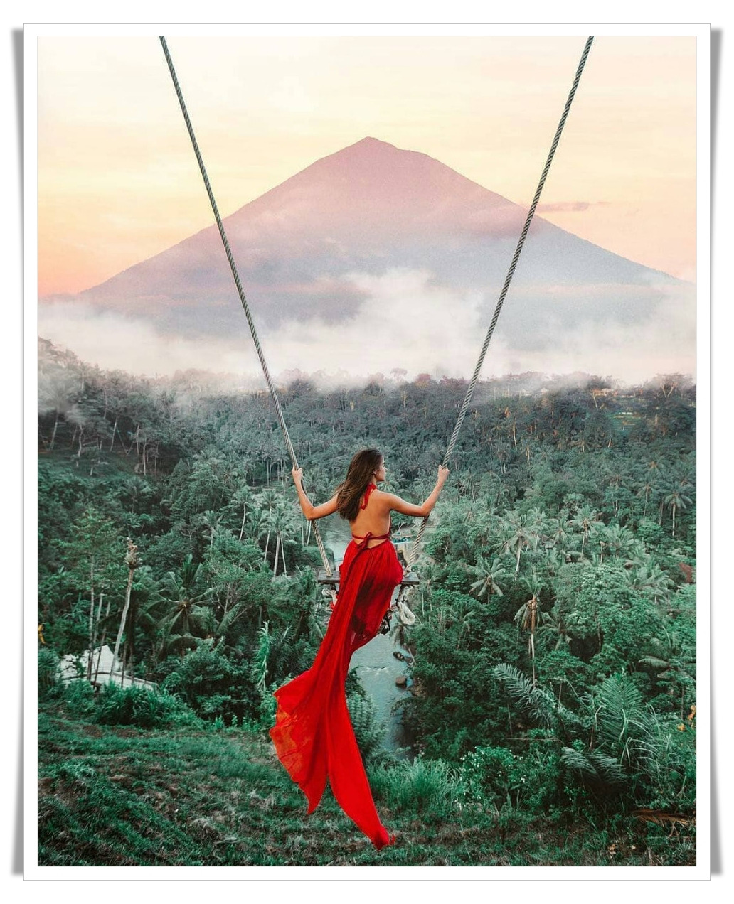 거대한 그네에 몸을 맡기고 하늘로 날아오르며 우붓의 푸릇푸릇한 경치를 눈과 카메라에 가득 담아본다. 그네에는 안전장치가 되어 있기 때문에 높이 올라가도 걱정 없이 안전하게 이용할 수 있다. 우붓에서 북쪽으로 약 25분가량 떨어진 해발 600미터에 높이의 뜨갈랄랑 계단식 논 (Tegalalang Rice Terrace) 인근이 가장 유명한 발리 스윙 명소다.
