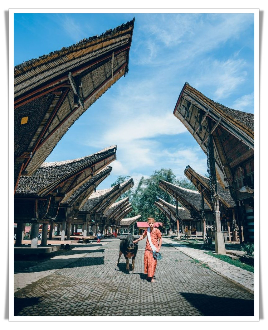 자카르타 국제공항에서 술라웨시까지 비행기로 두 시간 반, 차로 8시간이나 이동해야 하는 머나먼 여정이지만 세상 어디에서도 볼 수 없는 희한한 장례문화와 고급 커피인 '또라자' 커피 산지로 유명한 곳이다. 형편이 되는 만큼 가능한 많은 물소를 죽여 피를 뿌리며 죽은 자와 함께 걷는 'Dead man Walking' 의식을 치른다. 무덤은 절벽에 무덤을 파고 시체를 넣은 후 죽은 이와 닮게 만든 타우타우 인형(Tau-tau)을 놓는다. 이름도 재밌는 또라자 지역의 똥꼬난 앞에서 인증샷도 추천한다. 물소뿔이 많을수록 부의 상징’이라 집 앞에는 물소뿔을 엮어 세워둔다.