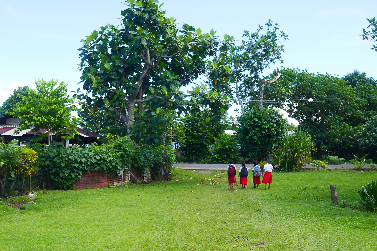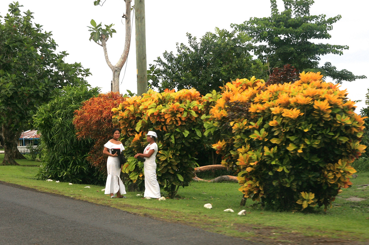사모아는 전국이 식물원이다. 처음 사모아를 찾았을 때 "울긋불긋 꽃 대궐"이라는 동요 한 소절이 스쳤다. 시내 한 복판을 제외하면 전 국토가 풀과 꽃으로 뒤덮여 있다 해도 과언이 아니다. 화려한 색의 대자연 속에 실오라기만 한 욕심도 걸치지 않은 소박하고 정겨운 사람들이 산다. 웅장한 폭포와 테헤란로 빌딩 숲만큼이나 거대하고 울창한 야자수 숲을 지나는가 싶더니 그리스 신전 유적의 일부처럼 깎아지른 듯 하얀 대리석 교회건물과 우리나라 대형마트 급 슈퍼마켓도 만나게 되는 반전에 반전이 거듭되는 곳이다.