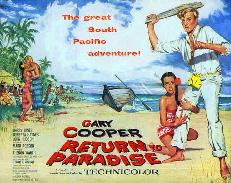 그의 이름과 잘생긴 외모는 아직도 이렇게 생생하고 아련한데, 1953년에 개봉한 영화 <리턴 투 파라다이스>는 기록에서 마저 사라져 가는 듯하다. 이 영화에 대한 정보를 찾으려 인터넷을 뒤져보니 우리나라에서는 1999년 개봉된 내용도 분위기도 너무나 다른 동명의 범죄 스릴러 영화가 검색된다.