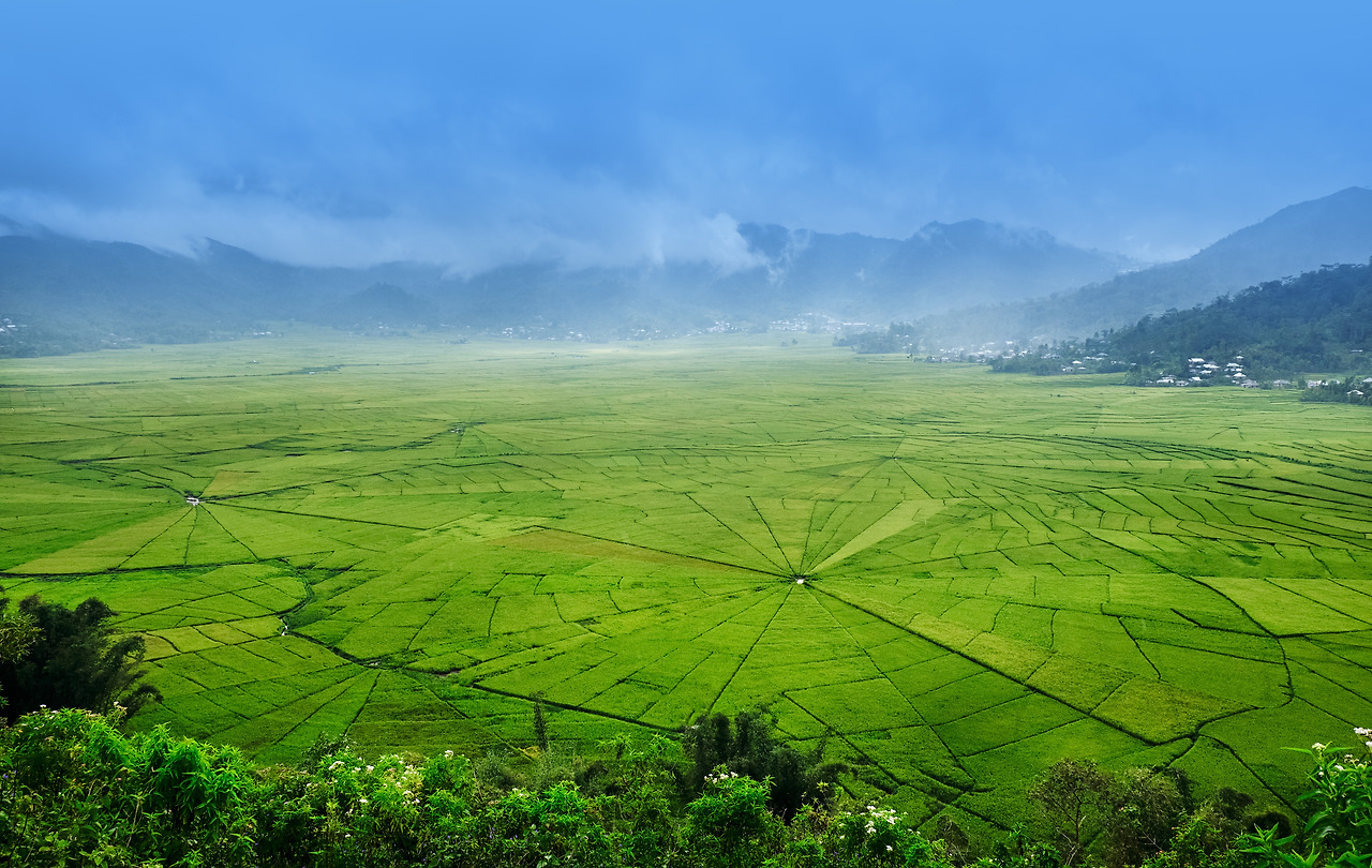 거미줄(정말 거미줄 같다) 모양의 거대한 논이 있는 짠 짜르 마을(Cancar village)