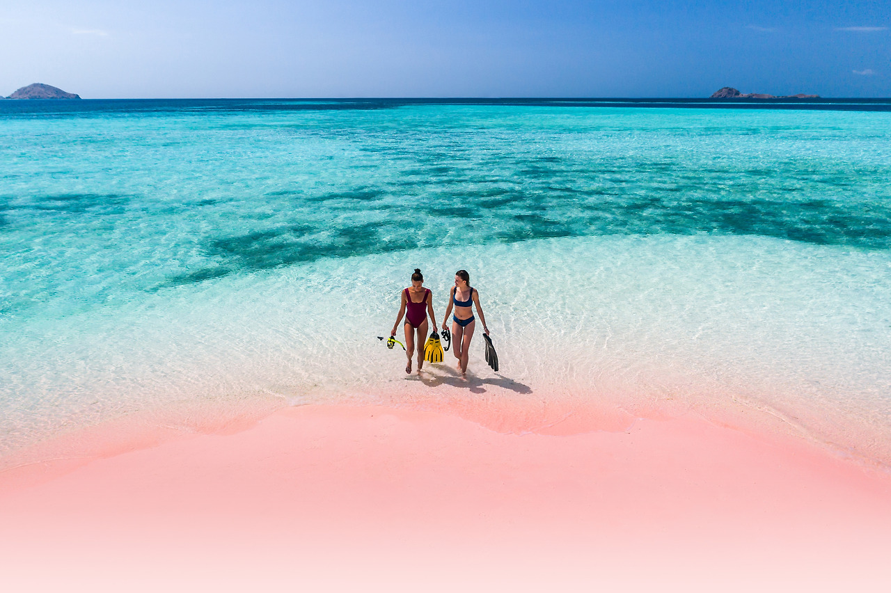 산호가 부서져서 붉은빛이 도는 핑크 비치는 세계에서 7곳뿐인데, 그중 5곳이 인도네시아에 있다. 인도네시아의 <10 뉴 발리> 중 하나인 라부안 바조(Labuan Bajo) 흔히 코모도 섬이라 불리는 곳. 그곳에 요렇게 예쁜 핑크 해변이 있다.