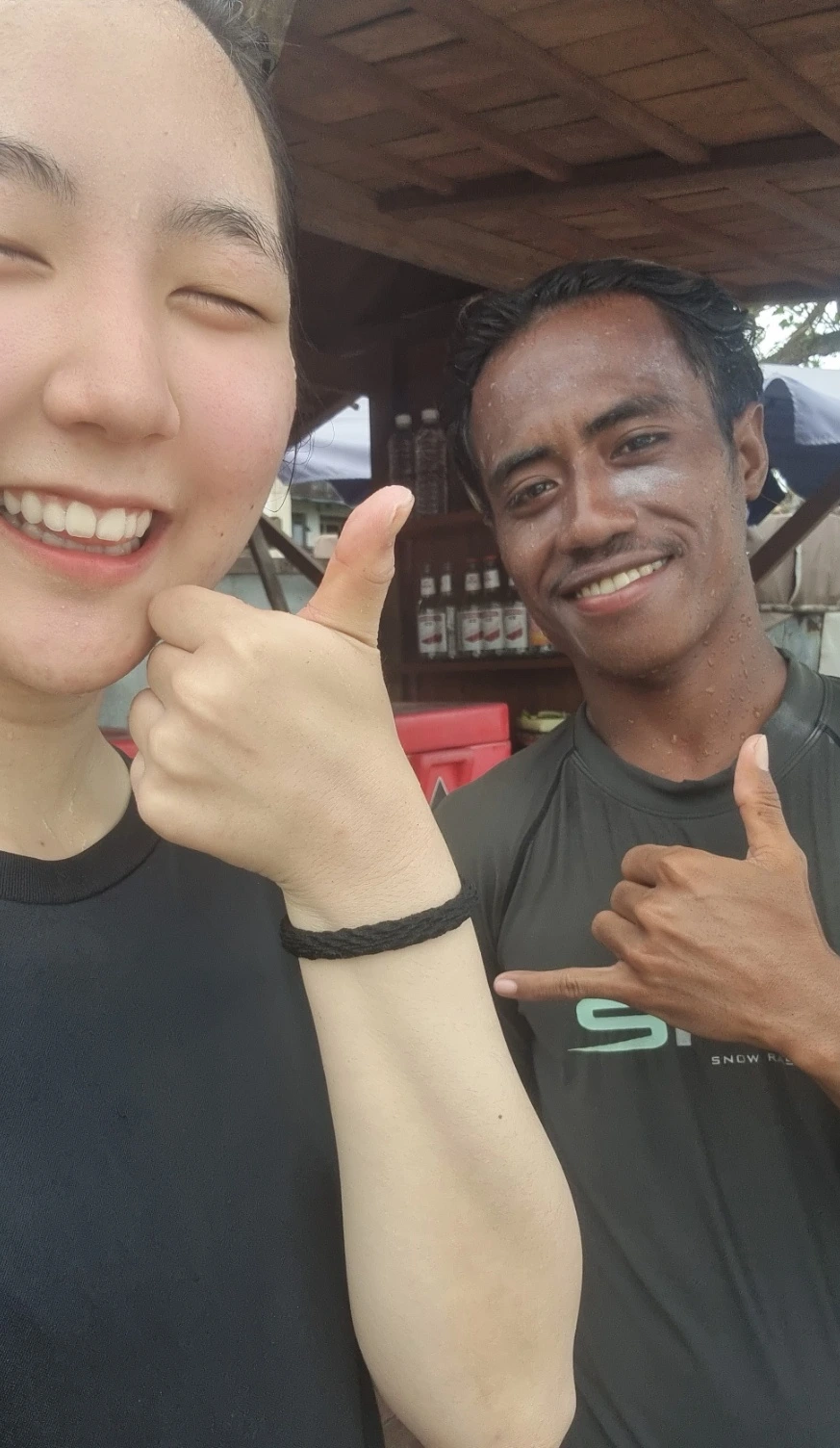 어제의 서핑 강사는 오늘의 친구가 되어 함께 서핑을 즐긴다.