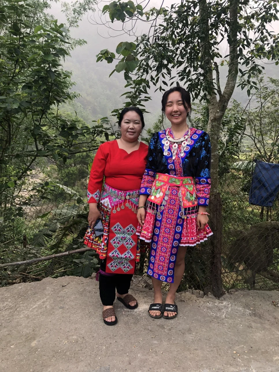 쑹도 전통 옷을 빌려주어 마을 일대를 함께 구경했기에
