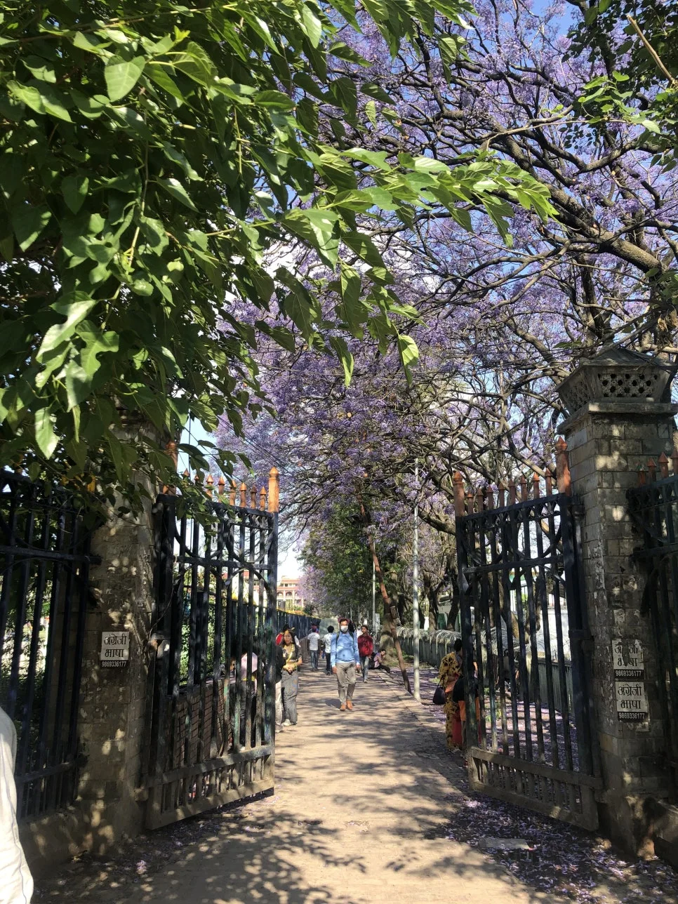 유독 보라색 꽃의 카트만두 거리가 포위망에 잡힌다.