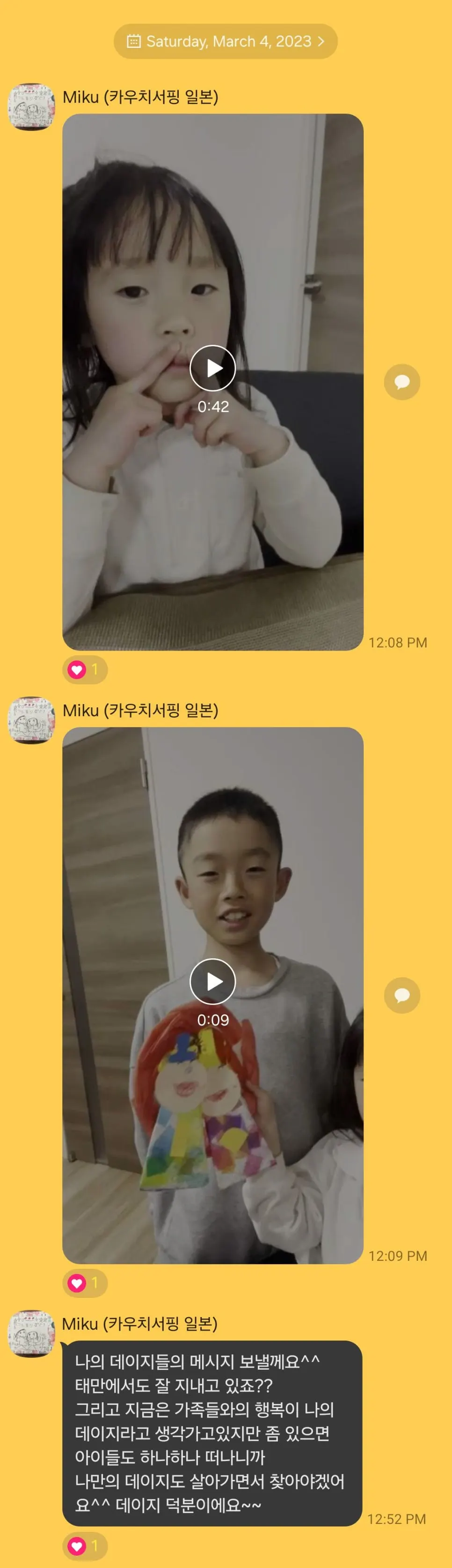 어느새 한 가족이 된 미쿠네와 마지막 밤이 되었다.