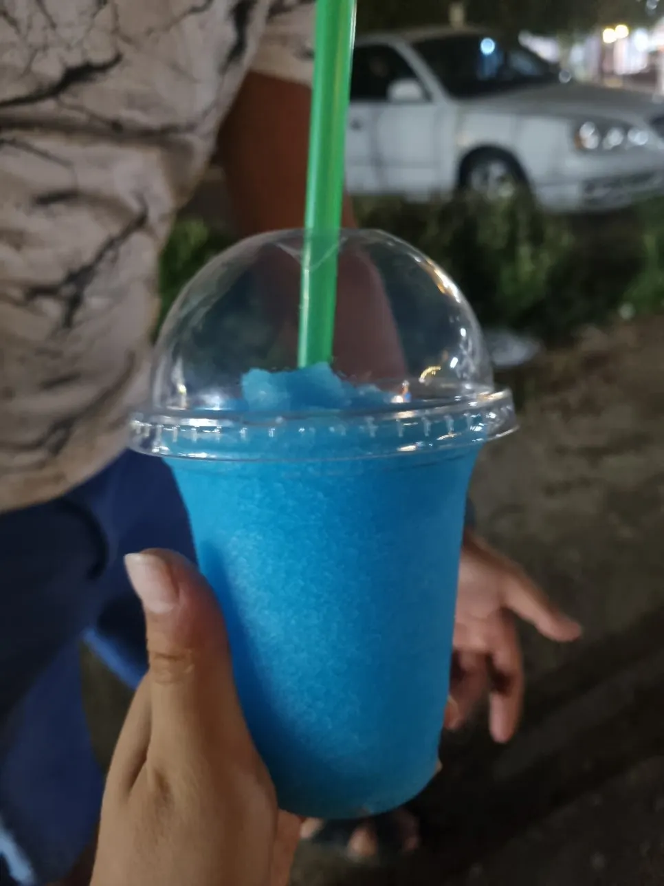 소다 맛 슬러시를 마시며 이야기 나눈다.