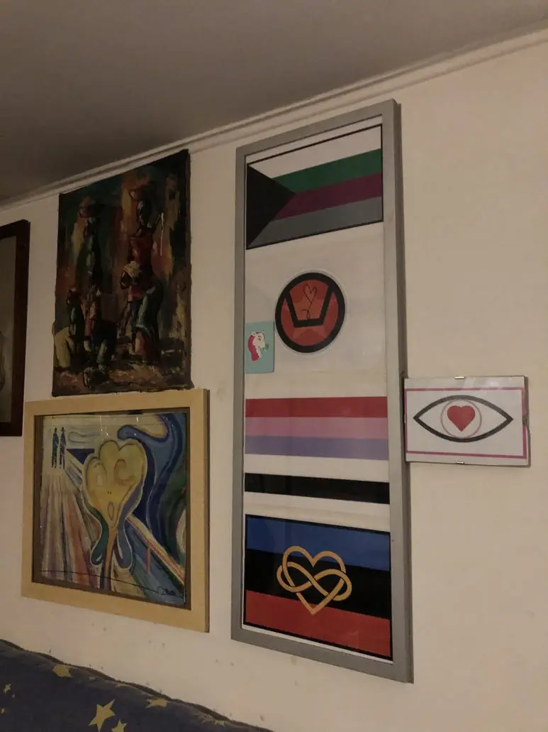 "저 그림은 *다자연애, 반무성애, 상호적성적 지향 ···을 의미해."