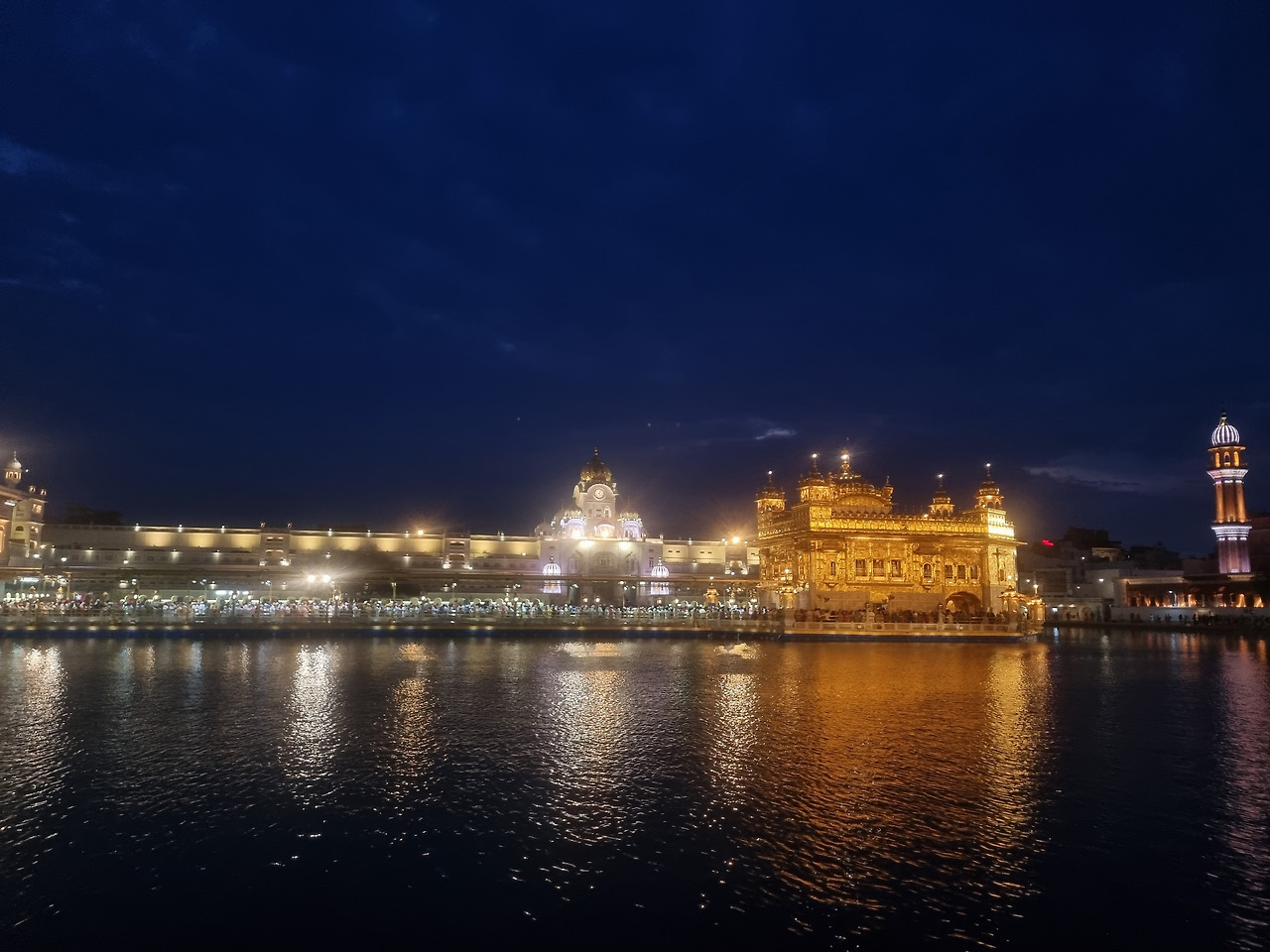 밤이 찾아오니 황금 사원은 아름답게 빛나고 있다.