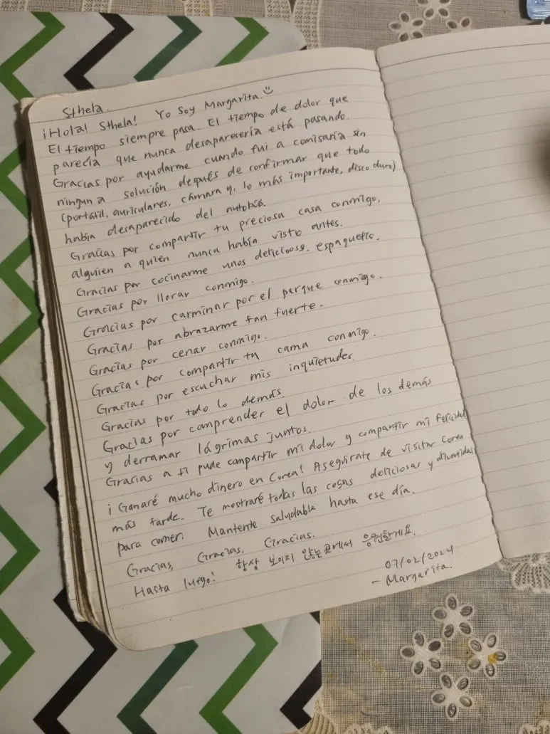 안쓰러운 눈빛을 뚫고 그들에게 다가가 얕은 스페인어로 간절히 말한다.