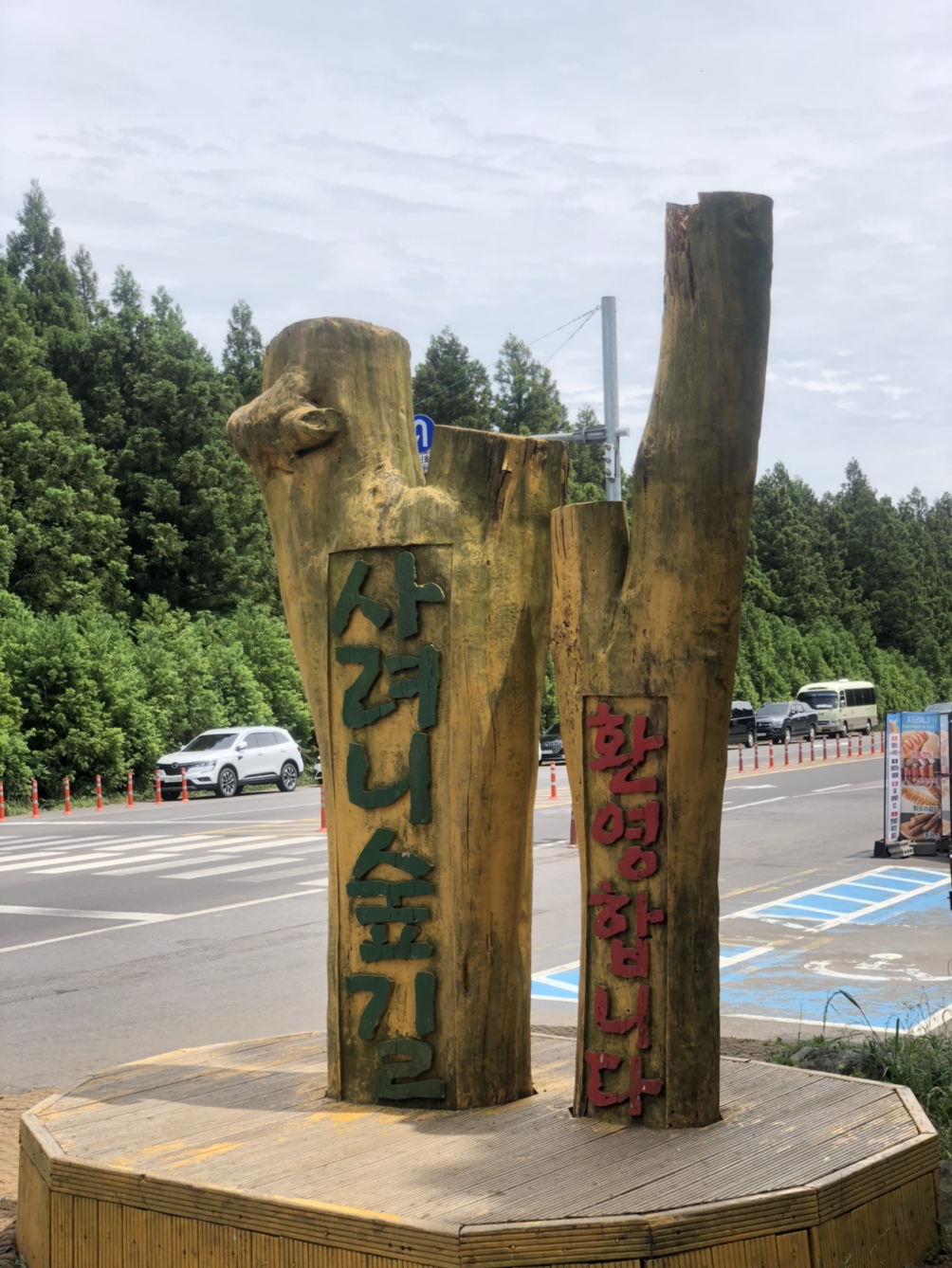 식사를 마치고 남자친구가 데려간 사려니숲길은, 무거운 캐리어까지 한가득 싣고 가파른 언덕을 올라가느라 모닝이 매우 힘겨워했던 곳이다. 애매한 내비게이션 안내로 제대로 된 입구 위치를 찾느라 좀 애를 먹긴 했지만, 막상 가보니 찾는 관광객이 엄청 많은 곳이었다. 안으로 들어가면 초록 초록한 풍경에 피톤치드가 마구마구 뿜어져 나오는 산림욕장 같았다. 흙, 나무, 초록잎 향에 코끝이 상쾌해지고 자연의 에너지를 다 흡수해 온 몸 구석구석 치유받는 것 같았던 기분.