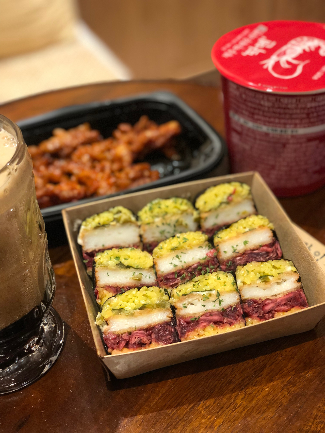 대충 짐 정리를 마치고 저녁식사로 포장해온 딱새우 김밥을 오픈했다. 사각김밥인데 양념을 한 밥에 딱새우튀김, 양배추피클이 토핑으로 싸여있었다. 진짜 한 입 가득 먹는데도 다음 조각을 또 집게 되는 마성의 맛. (진짜 돼지는 먹고있으면서도 다음 먹을걸 집는다는데...) 생각보다는 평범하다는 리뷰도 많았는데, 나한테는 제주에 놀러 온 기분 간단하게 내기 딱 좋은 저녁이었다. 근처 하나로마트에서 사 온 흑맥주와 컵라면, 매운 닭발도 같이 저녁 만찬으로 흡입했다. (닭발은 너무 매워서 초이스 실패. 먹고 난 다음 날 화장실도 매우 여러 번 갔다.) 제주에 도착하자마자 밤이 돼서 살짝 아쉬웠지만, 내일부터 시작될 진짜 제주살이가 더 기대되었다.