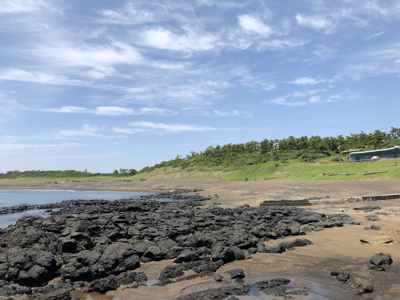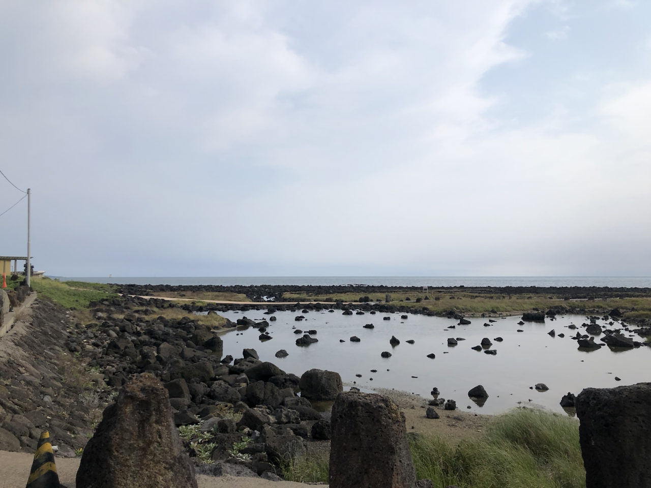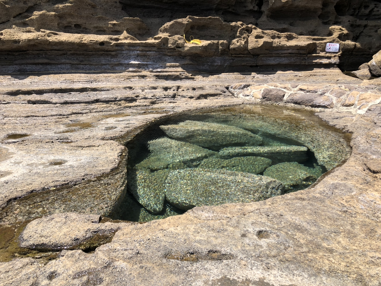 배가 고프지 않아서 점심을 패스하고 용머리해안으로 넘어갔다. 산방산 바로 아래에 있는 용머리해안은 주차장 아래 방향으로 (말구경도 하고 사진도 찍어가며) 슬슬 내려가다 보면 입구에서 매표를 하고 입장할 수 있다. 매표소 입구를 지나자마자 드러나는 해안절벽의 절경이 눈에 들어왔다. 웅장했고 거대했다. 위대한 자연 앞에서 멋지다는 말로는 표현이 부족한 느낌이었다. 발이 빠지지 않게 조심조심 해안가를 걷는 동안 시원한 바람과 파도소리가 느껴졌고, 싱싱한 멍게와 해삼을 썰어 판매하시는 해녀분들의 찐제주사투리도 들었다.