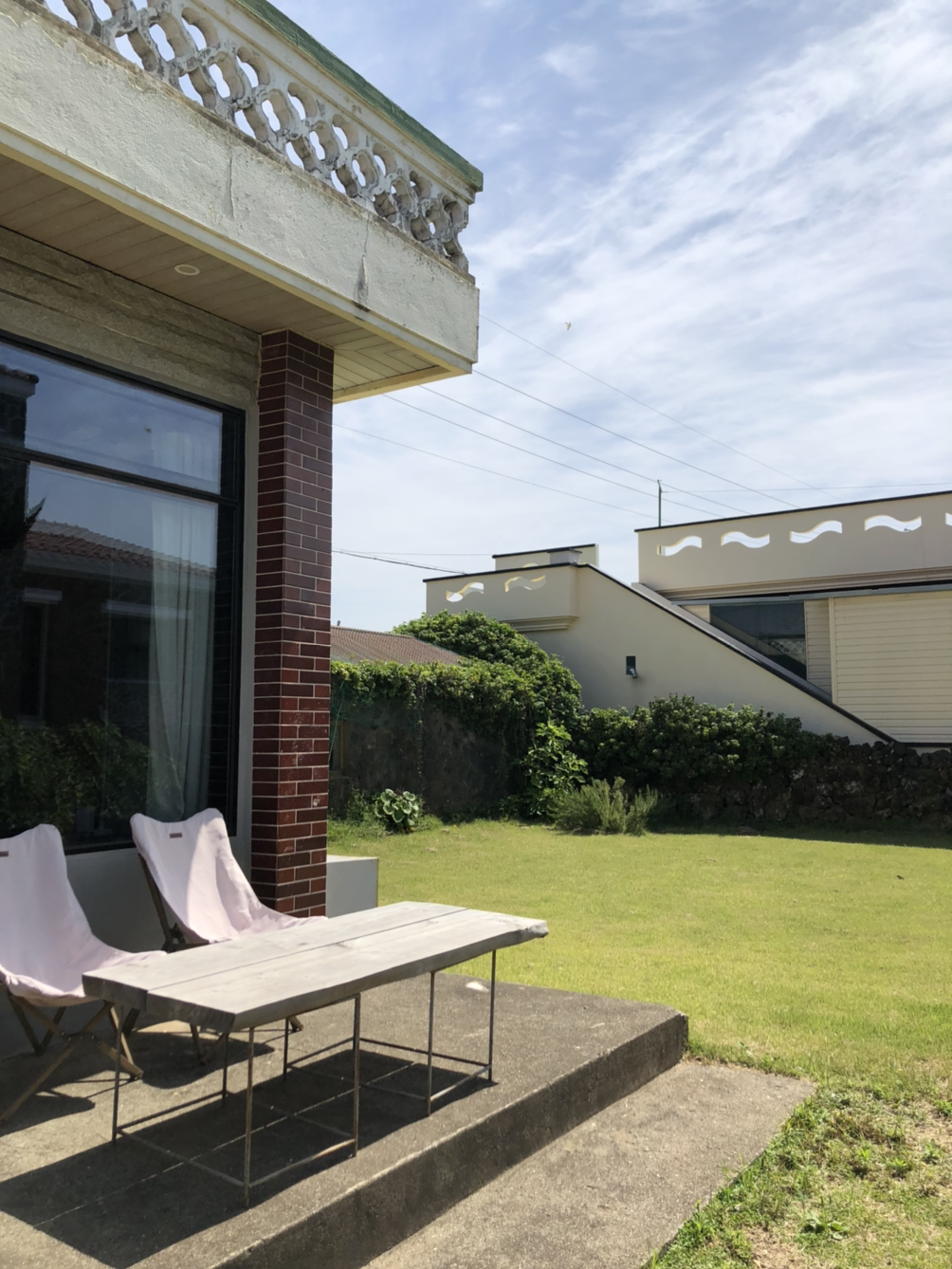 픽업 후 해가 지기 전 한 시간을 부랴부랴 달려온 곳은, 제주 2주 살기의 가장 첫 번째 숙소인 안덕면에 위치한 펜션. 각 객실마다 침실 하나와 거실 겸 주방, 미니 테라스가 있는 분위기 있는 숙소였다. 물론 나는 숙소 고를 때 주차장 유무도 중요하게 고려했는데, 객실 앞 넓은 마당 공간이 게스트용 주차장으로 널찍하게 있었다.