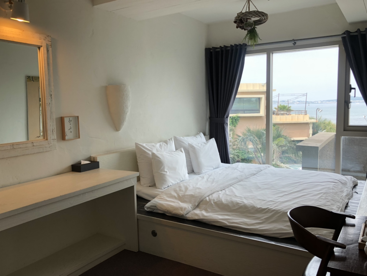 1인 또는 2인 객실은 동일한 구조인데 예약금액에 약간의 차이를 두었고, 2~4층 중에서 순차적으로 배정받는다. 나는 2층을 받았고, 다음날 나와 잠시 합류한 직장동료는 4층을 배정받았는데, 확실히 고층이 더 좋기는 하지만 전 객실이 바다 뷰를 즐길 수 있게 되어있어, 어느 곳이든 바다멍이 가능하다.