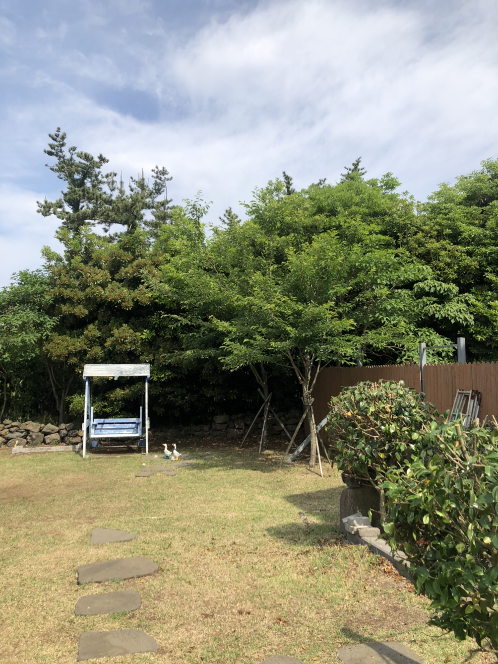 펜션 한편에 있는 잔디마당. 돗자리 깔고 책읽기 너무 좋을 것 같다