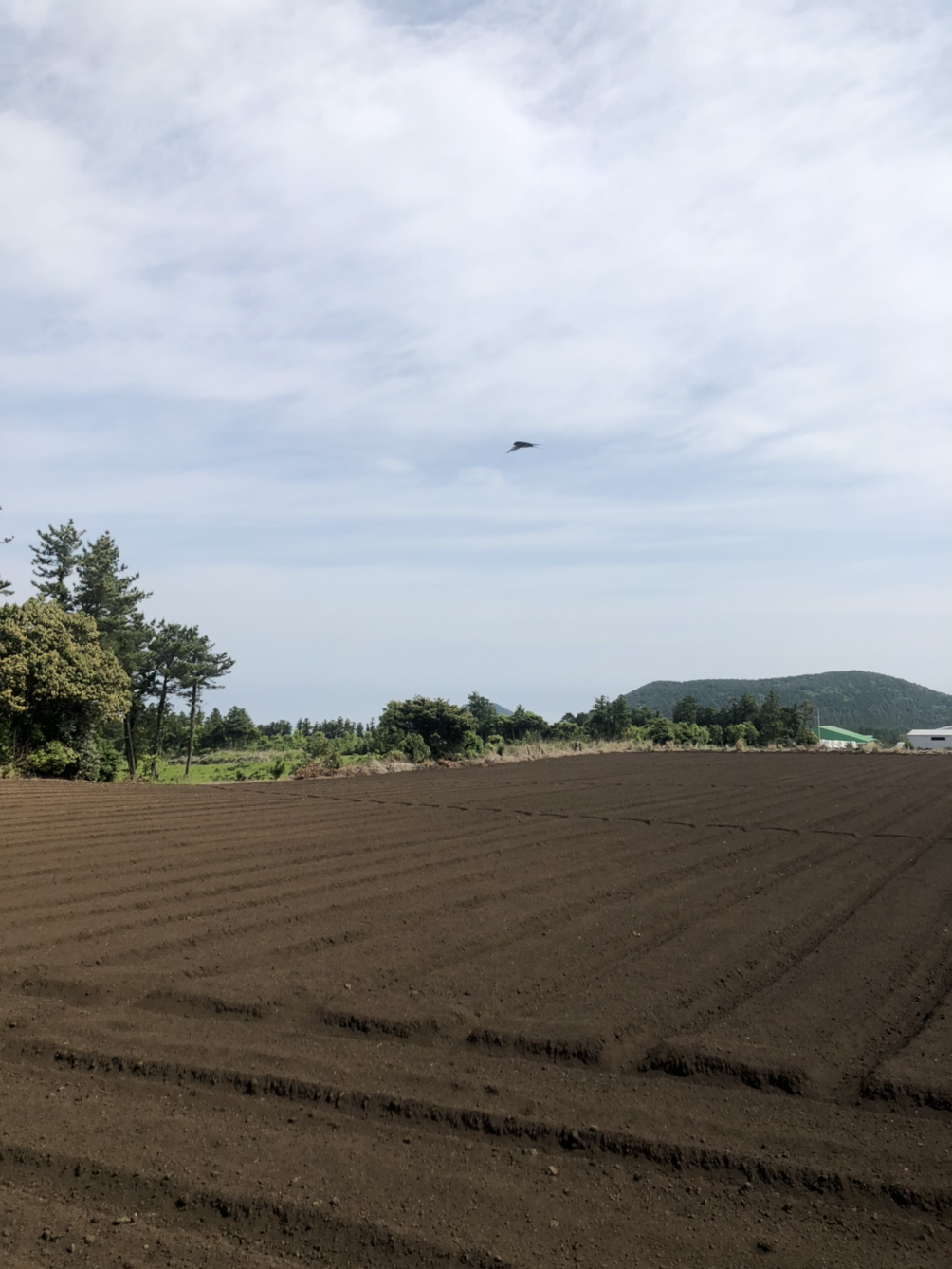 송당리를 떠나는 날이었다. 아침마다 지저귀던 새들 소리가 그리울 것 같아서 피곤한데도 아침 일찍 일어나 청보리밭을 바라보았다. 맑은 하늘 아래에서 걱정 없이 자유로운 비행을 누리는 새가 부러웠다. (하지만 '인생은 가까이서 보면 비극, 멀리서 보면 희극이다.'는 말처럼, 닥친 하루를 살아내기 위해 열심히 날갯짓할 수밖에 없는 새를 자유롭다 부러워 한걸 지도 모르겠다.)