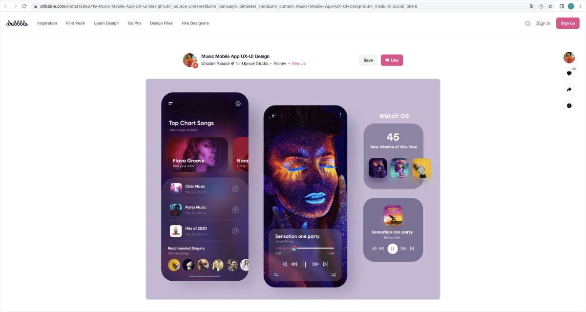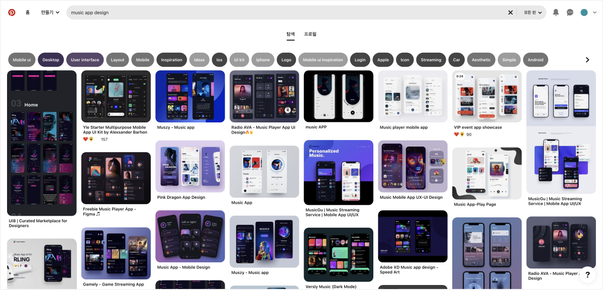 레퍼런스를 찾을 때 많이 이용하는 Pinterest, Behance, dribbble과 같은 사이트에서는 콘셉트 디자인들이 주로 나와있다. 화려하고 톡톡 튀는 디자인들이 많지만 실제 구동되는 앱은 아니다. 개발까지 고려되지 않아 실제 라이브 되는 앱에 적용시키기는 어렵다. 디자인 또한 모든 화면을 고려하지 않고 단편적인 부분만 만든 경우가 많다.