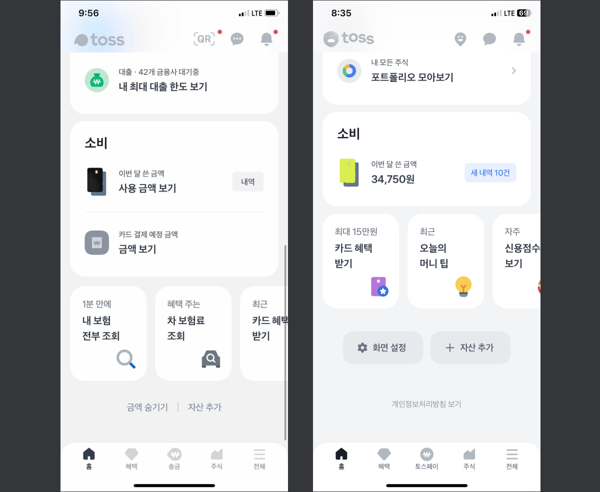 로고변경: Top bar의 토스 로고가 변경되었다.