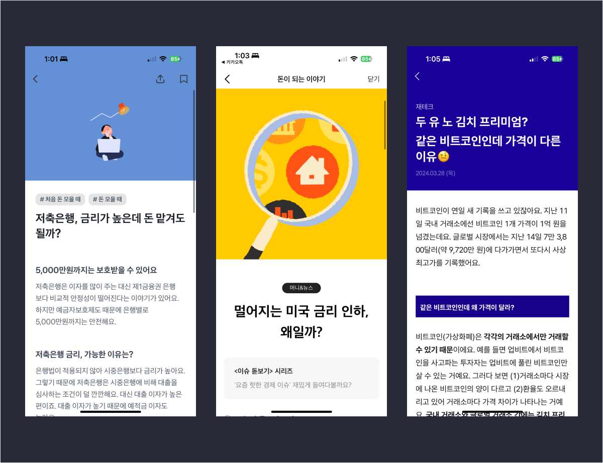 인터넷 뱅킹 서비스의 경우 유저를 끌어모으기 위해 그 형태가 단순 금융 서비스뿐만이 아닌 관련 정보를 제공하는 콘텐츠의 역할도 하고 있습니다. 다양한 주제의 금융 콘텐츠를 통해 사용자의 흥미를 돋을 수 있게 하는 다양한 금융 정보들을 제공하고 있습니다. 이러한 방식은 사용자를 끌어들이고, 충성유저를 강화하는 데 있어 도움이 됩니다.