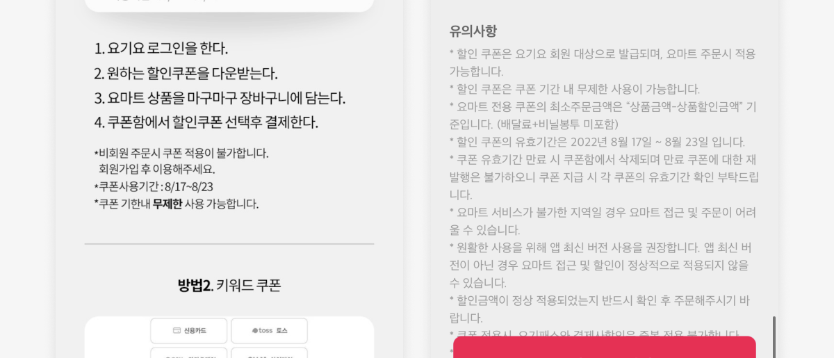 요기요의 [8월] 요마트 장보기 쿠폰 프로모션 페이지