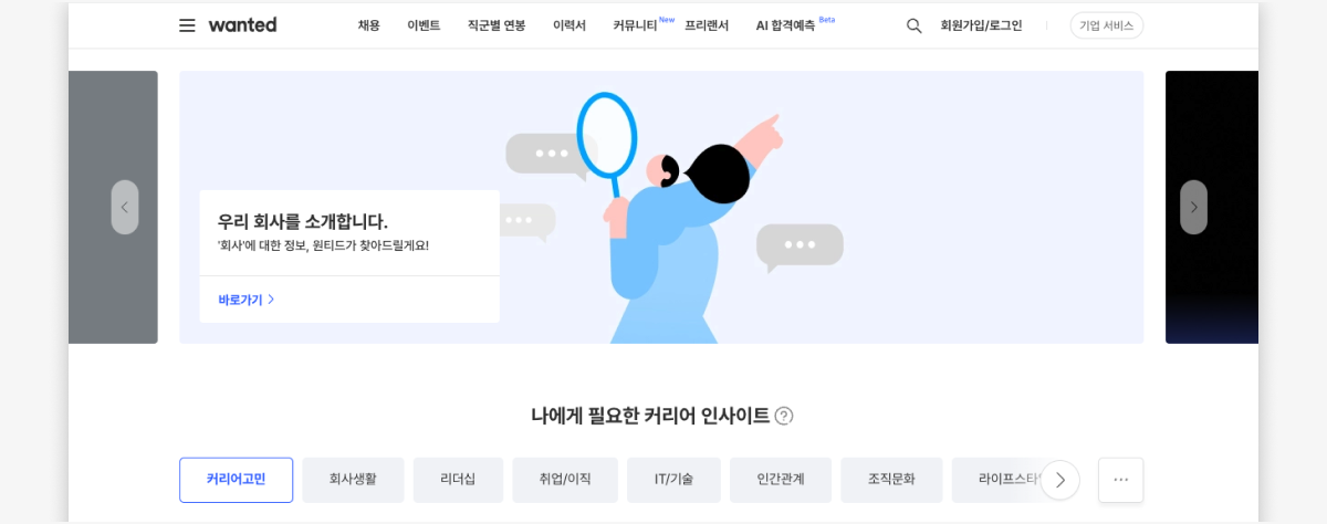 원티드의 채용공고 배너