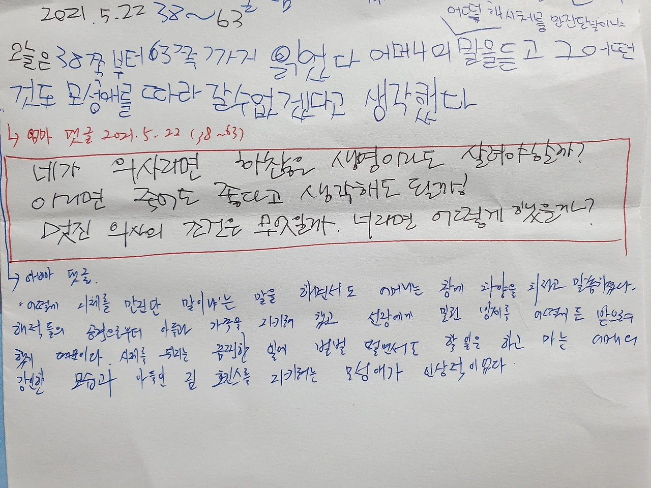 '어떻게 시체를 만진단 말이냐' 어머니의 말을 듣고 그 어떤 것도 모성애를 따라갈 수 없다고 생각했다 (민서의 글)