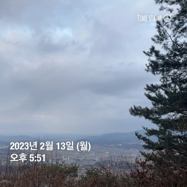 언제나 그 자리에 가만히 서있는 산 위에서, 평온하고 고요한 마을을 바라보며