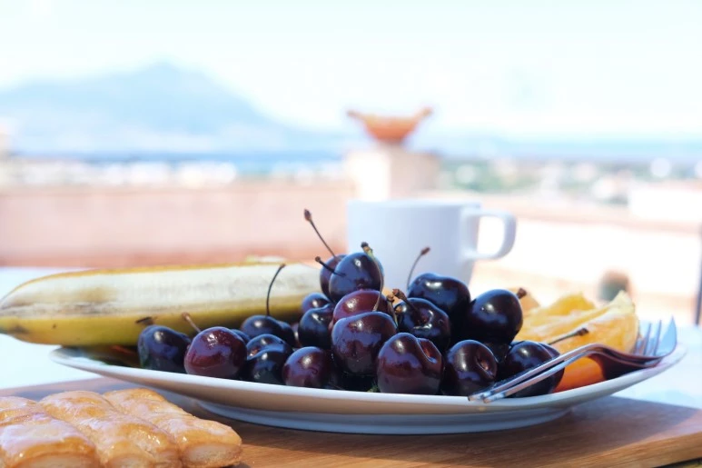 '아름다움이 주는 위로'를 경험했던 테라스는 노을 질 때만 예쁜 게 아니었다. 다음 날 아침, 슈퍼에서 산 과일과 파이, 따뜻한 커피를 들고 옥상 테라스에 올라 시간을 보냈다. 원래 아침만 먹고 나서는 섬 곳곳을 돌아다닐 계획이었는데, 이곳이 프로치다 다른 어떤 곳 보다 아름다울 거란 느낌에, 그렇게 더할 나위 없음에 좀 더 오래 머물렀다. 오전을 여기서 다 보냈다.