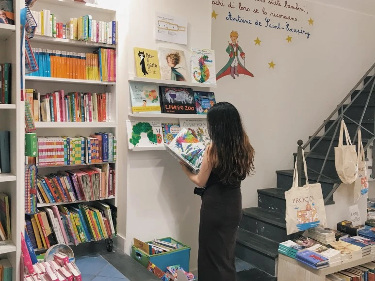 프로치다에 온 첫날, 프로치다 항에서 내리자마자 얼마 못 가서 이 서점을 발견했다. 바로 들어가고 싶었지만 숙소 체크인 시간 맞추려고(결국 두 시간이나 늦었지만) 다음을 기약하며 스쳐 지나갔었다. 여행지에서 그 나라 언어로 된 그림책을 사는 건 내겐 여행을 하고 있다는 의식이고, 나를 위한 낭만 같은 거라서, 다음 날 다시 들렀다.