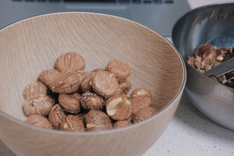 10월, 여기저기서 밤을 한주먹씩 주길래 가을이 온 것을 알았다. 바구니에 담긴 밤을 보며 밤조림을 만들던 영화 속 주인공의 차분하고 달콤한 분위기를 재현할 꿈을 꾸었다. 1년 반 만의 출근을 시작하기 전전날, 나의 무소속 라이프를 마무리하는 기념으로 호기롭게 밤조림을 만들기 시작했다. 밤 양이 얼마 안되고, 낮에 시작했으니 오늘 밤 안에는 끝나겠지 했었다.