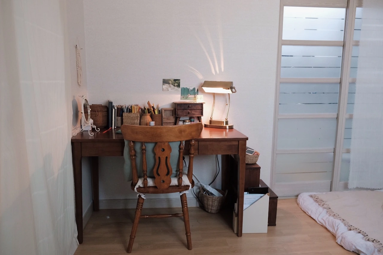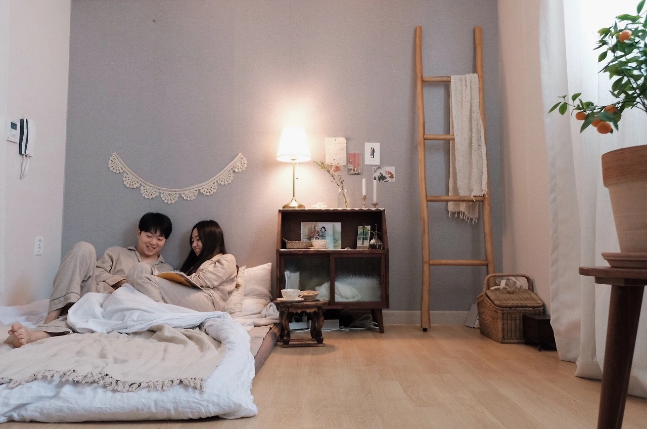 사실 '집'보다는 '임시거처'의 성격이 강했다. 처음에는 김천에 가는 것도 마음에 안 드는 판에, 그냥 대충 해두고 살까 싶었다. 그런데 나를 위해서라도 그러면 안 될 것 같았다. 내가 이 공간에서 머무는 시간을 잘 돌봐야만 했다. 준비되지 않은 마음을 천천히 다듬고, 김천에서의 새로운 챕터를 건강히 받아들이고 싶었다. 그래서 굳이 '네 번째 집'이라고 이름 붙였다. 그래서 도대체 잠깐 사는 집에 나무 사다리가 왜 필요한지 모르겠다는 예성이의 의아한 표정을 무시하며 굳이 내가 좋아하는 사다리를 꾸역꾸역 차에 싣고 왔다. 새로 만날 공간과 거기 머물 나 자신을 잘 돌보겠다는 의지였다. 그렇게 8평 남짓한 원룸에서 예성이와의 첫 김천 생활을 시작했다.