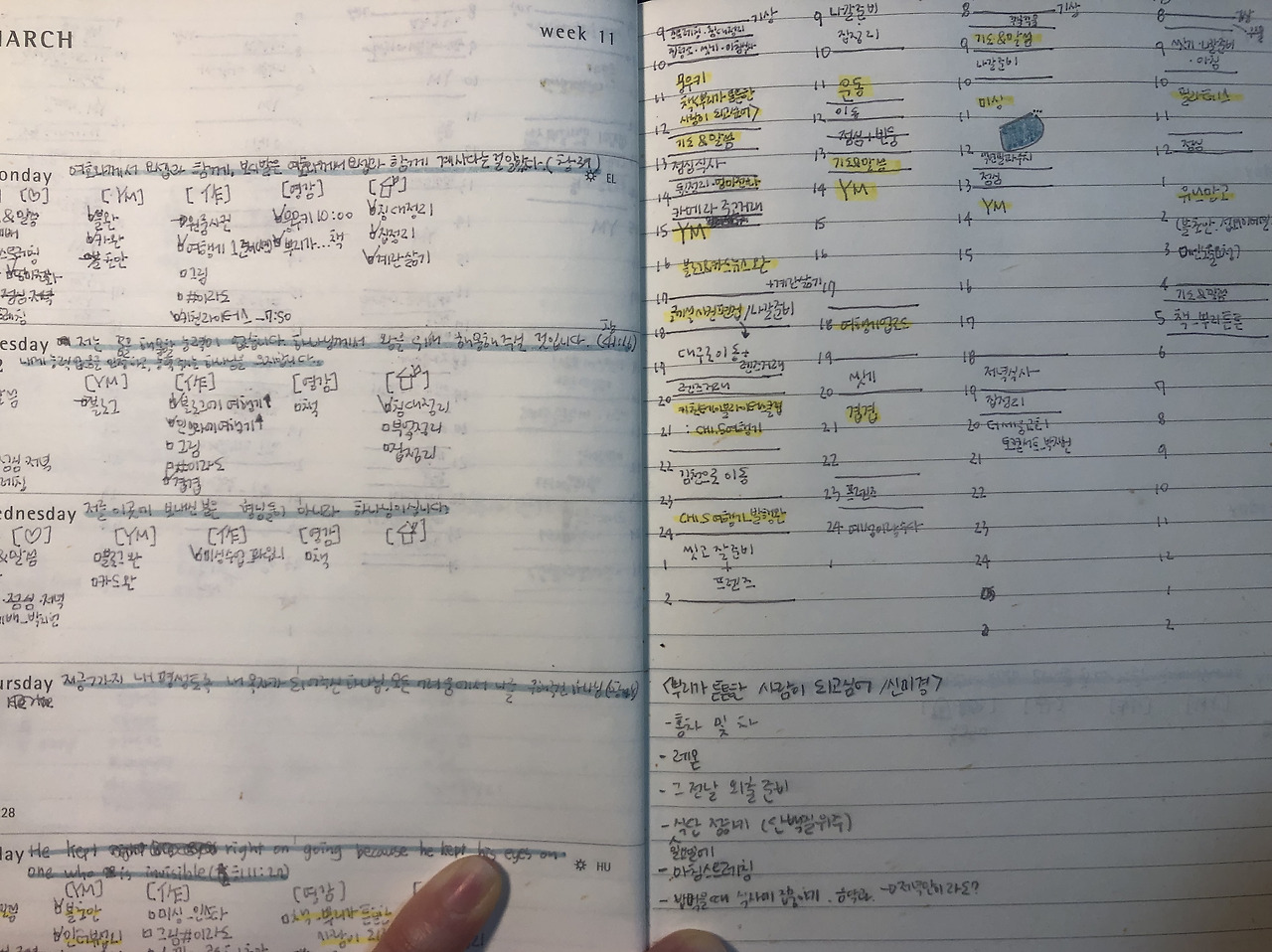 그래서 친구와 나는 일주일에 두 번(월요일, 수요일)에 오전 9시에 스카이프로 만난다. 하루 계획을 나누고 서로를 응원한 뒤 스카이프를 켜 둔 채 6시까지 지낸다. 서로가 보고 있는 것만으로도 덜 눕게 되고, 조금 더 긴장하게 된다. 그렇게 하루를 살며 어떻게 시간을 보냈는지를 기록하고 밤 10시에 공유한다. 이런 식으로 하루하루를 튼튼히 다지고 있다.