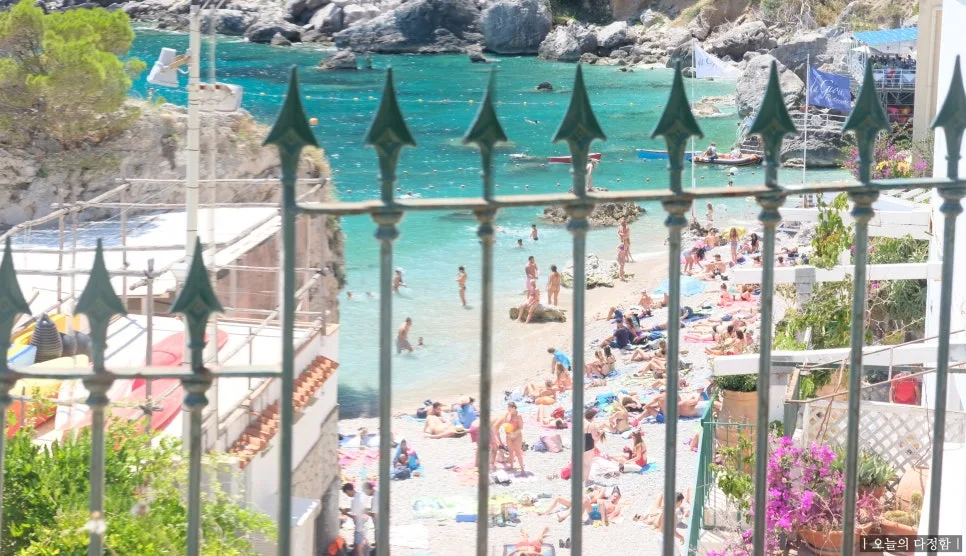 그렇게 걷다 보니 자연스럽게 바다를 만났다. 바다로 목적지를 둔 적 없어도 걷다 보면 자연스레 바다를 만날 수 있다는 게 섬의 매력이다. 카프리 바다 앞 파라솔에 앉아 음료를 주문했다.