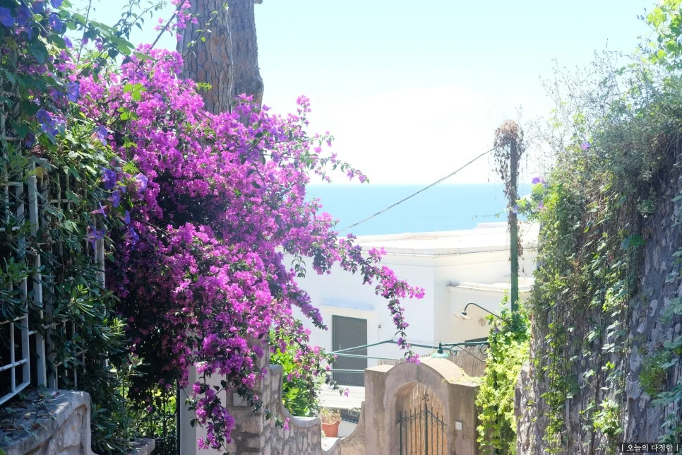 카프리는 산책하는 기분으로 골목골목을 걸었다. 걷다 보니 허기져서 빵집과 젤라또 가게에 들르고, 예쁜 가로등, 운치 있는 돌담, 흐드러지게 핀 꽃 같은 걸 눈과 사진에 담으며 많이 걸었다. 아름다운 것 옆에 아름다운 것이 즐비했다.