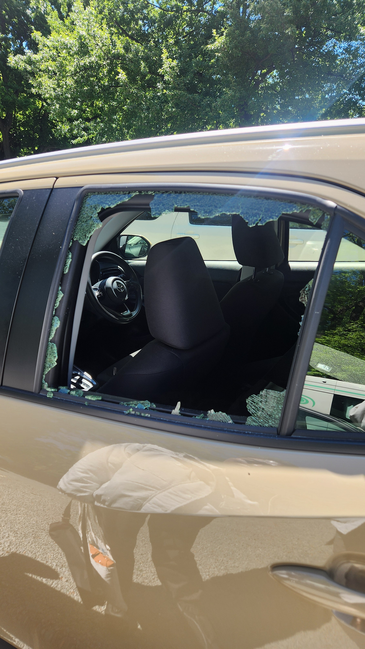 공원을 한참 걷다가 벤치에 앉아서 점심을 먹고 외국식 모임이 열릴 것 같은 멋진 카페도 구경하고 공원 가운데 눕거나 앉아 평화롭고 여유로운 시간을 보내다 보니 3시간이나 지났다. 1시에 공항으로 출발해 1시 30분에는 도착해 출국 수속을 밟을 계획이었기 때문에 아쉬운 마음을 뒤로하고 주차장으로 갔다. 그런데 차에 돌아오니 차 왼쪽 뒷유리창이 깨져있었다. 차 뒤에 둔 가방도 없어졌다. 아무리 봐도 믿기지 않는 풍경이라 처음엔 둘 다 멍했다. 곧 정신 차리고 지금 우리가 무엇을 해야 하는지 알아보기 시작했다. 다행히 카드와 여권 등이 중요한 게 든 가방은 오빠가 매고 있었다. 도난당한 가방에는 무엇이 들었는지부터 곱씹어봤는데 이북리더기, 목베개, 선글라스 정도만 우선 떠올랐다. 사소해서 더 어이가 없었지만, 이를 수습하는 게 먼저였다.