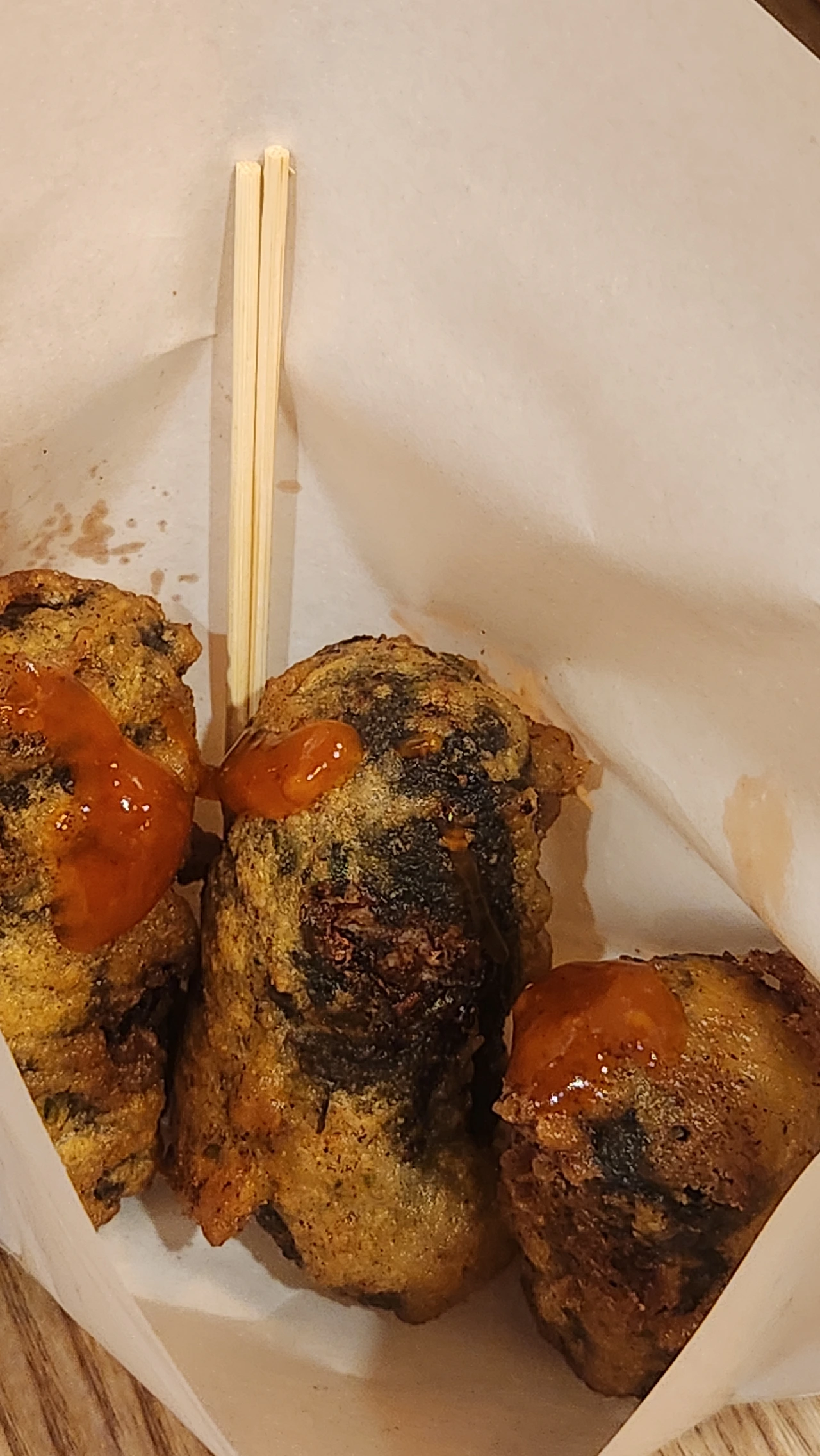예산시장은 생각보다 크고 본격적이었다. 음료부터 디저트, 음식과 고기까지 종류가 많았지만 우리의 목적은 응원했던 참가자가 운영하는 가게라 거침없이 시장을 탐색했다. 미리 알아본 '오가면 간식집', '신양튀김' 등에서 화면으로만 보던 고기호떡과 닭다리구이, 고기튀김을 먹어 볼 수 있다는 것도 즐거웠지만 응원하던 참가자를 눈앞에서 볼 수 있어 설렜다. 프로그램 방영 당시 꽤 몰입하며 봤고 이번 휴가의 목적이자 시작이었기에 음식만 맛보고 돌아가기엔 아쉬웠다. 남편이 먼저 음료라도 사서 드리자고 의견을 냈고 나도 기꺼이 동의했다. 직접적으로 팬심을 표하려니 굉장히 쑥스러웠지만, "팬입니다. 응원할게요." 하는 짧은 문장으로 마음을 전하고 나니 그전보다 마음이 더 크게 부푼 게 느껴졌다. 벅차고 뿌듯했다. 누군가를 좋아하고 응원하는 마음과 이를 표현하는 일은 누군가뿐만 아니라 당사자에게도 큰 힘이 된다.