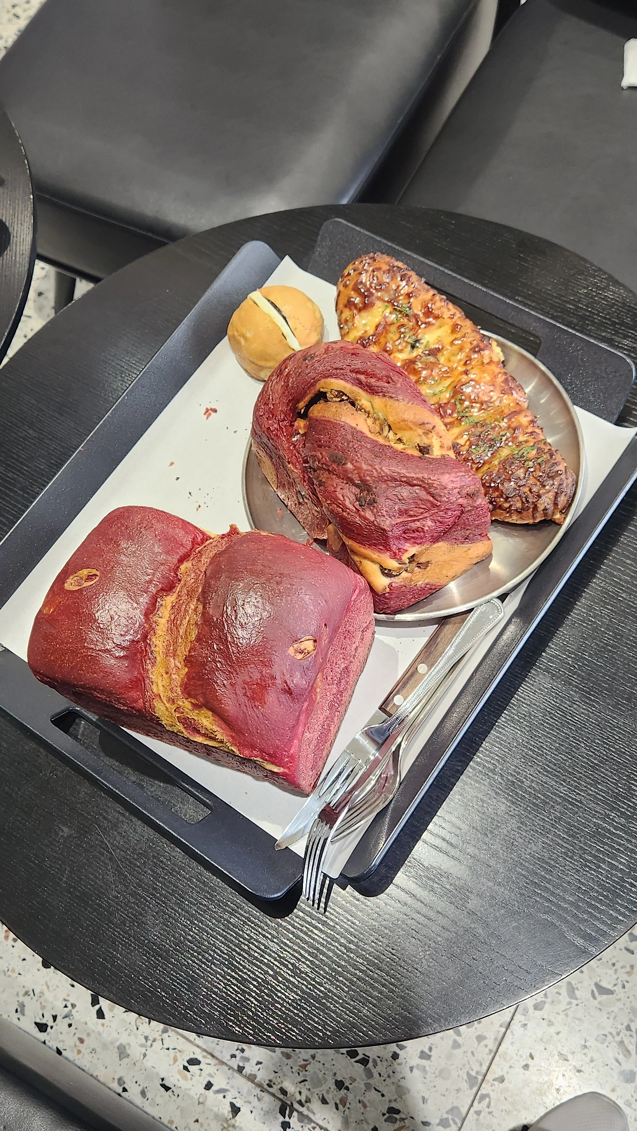 이미 배부르게 먹었지만 아쉬움이 남지 않게 예산 시장으로 돌아가 유명한 페스츄리 약과도 사고 웨이팅이 있는 카스테라 집에서 줄도 서보고 오빠의 원픽이었던 고기 호떡을 또 주문해 청주로 출발했다.
