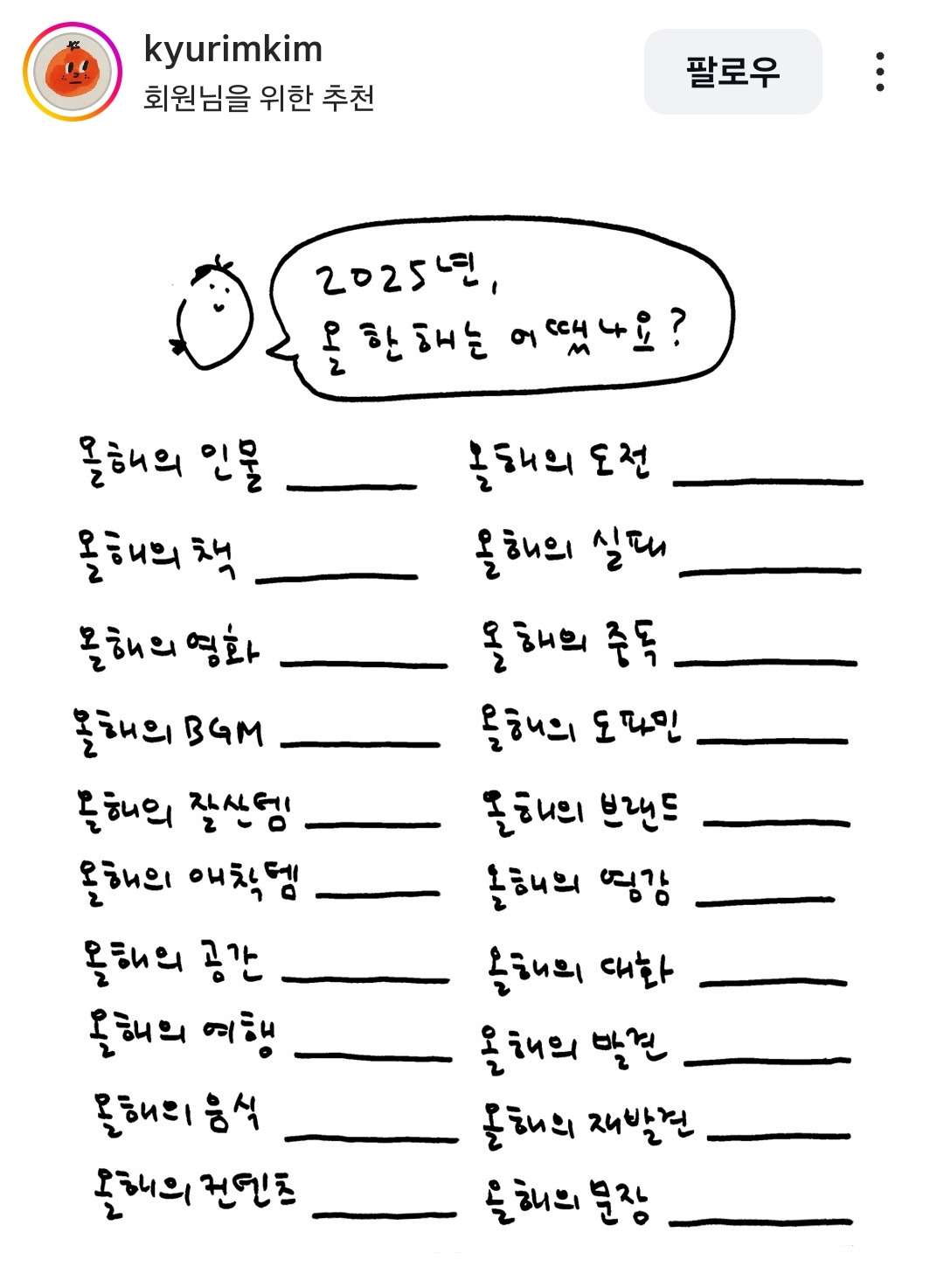 12월 약속은 평소와 조금 다른 기분이다. 올해가 가기 전에 꼭 한 번 더 보고 싶다는 마음으로 생긴 약속들이라 애틋함과 설렘이 있다. 분명 몇 개월 전에 만났는데도 그렇다. 한 해를 마무리하는 시점에서 만나다 보니 이 시절을 함께 보내고 있다는 생각에 애틋하고 이를 자세히 나누고 싶은 마음에 설렌다. 이런 마음만큼이나 서로가 익숙하기에 만나고 나면 어느 때와 다름없다. 서로의 근황을 물어보고 고민을 나눈다. 이런 대화 속에 나는 올해가 어땠냐는 질문을 꼭 꺼낸다.