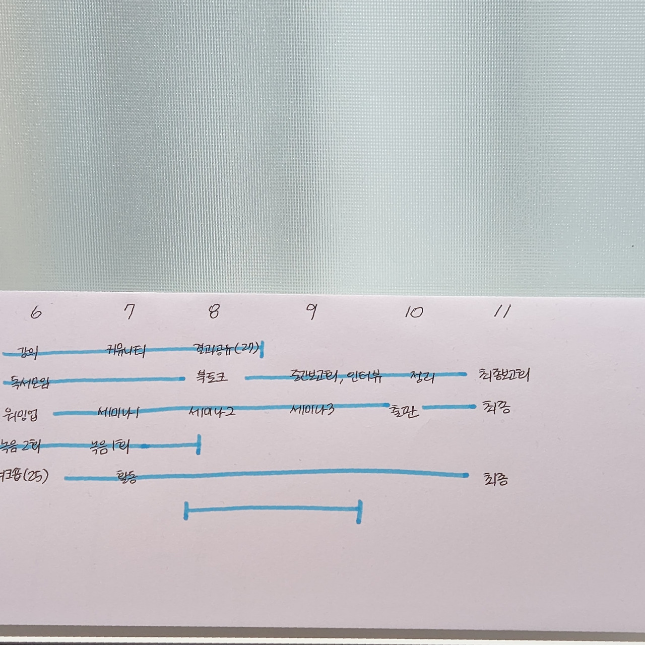 창가에 놓아둔 하반기 타임라인