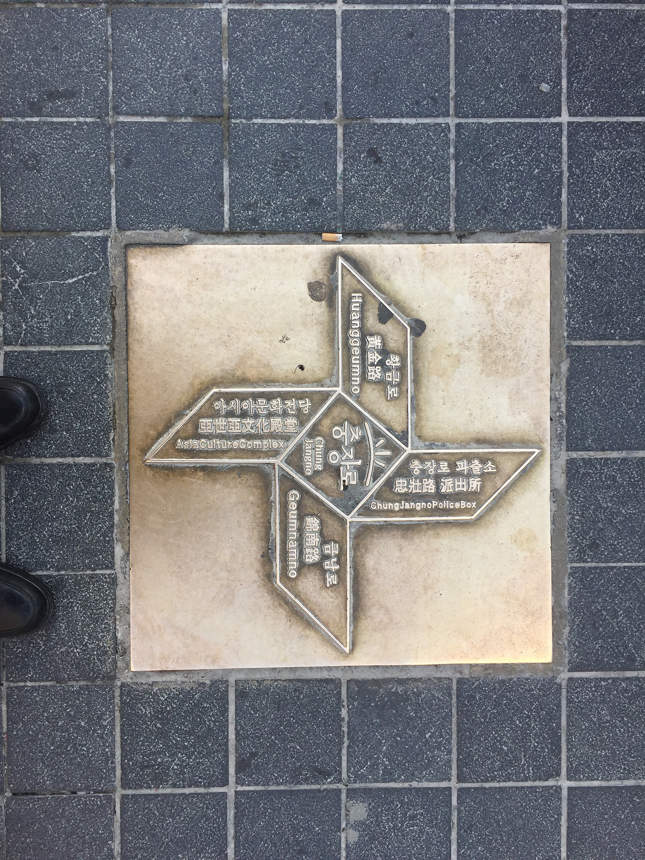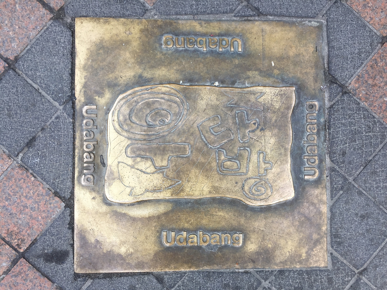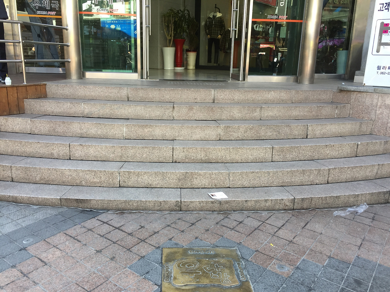 우체국 계단 앞 바닥에 있는 우다방 기념 표지판