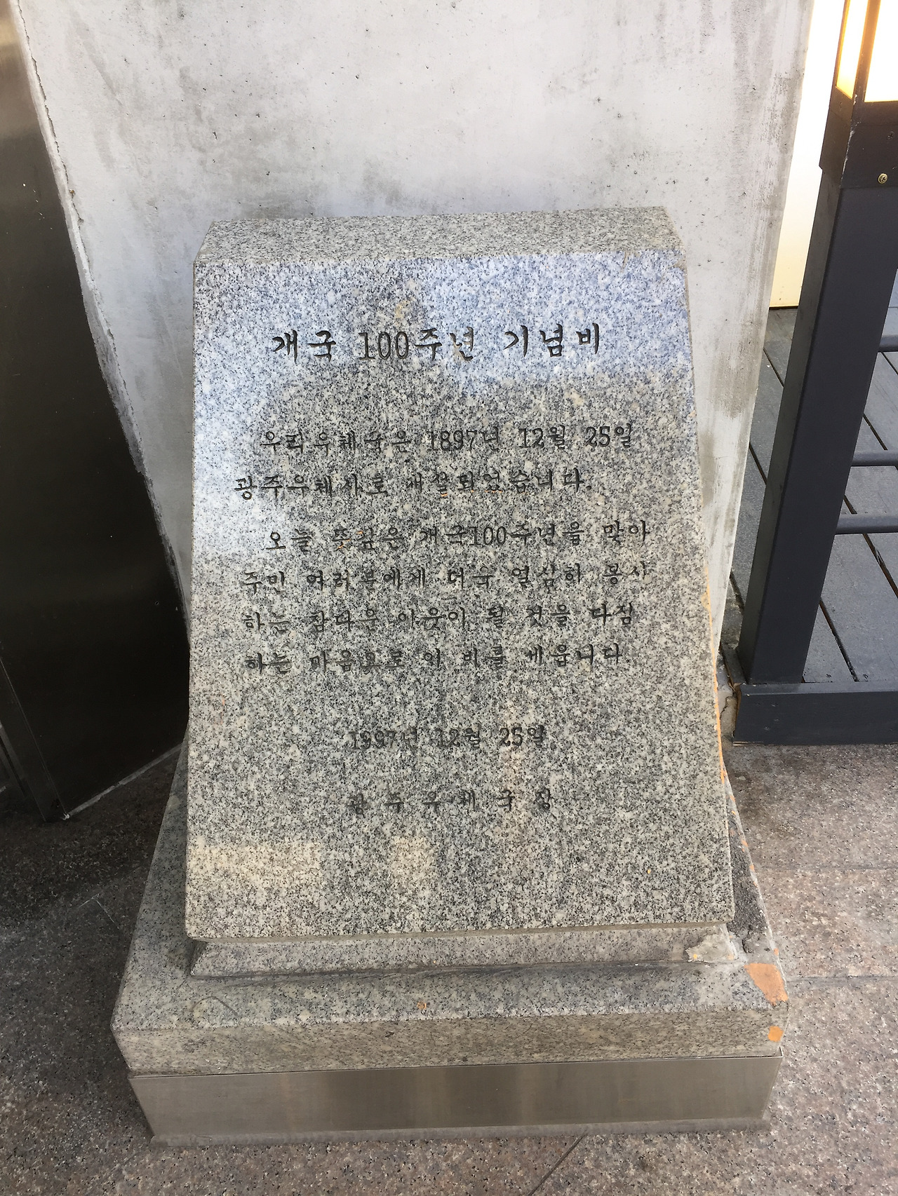 광주우체국 설립 100주년 기념석(1997.12.25)