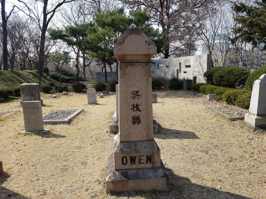<선교사 묘역을 둘러싼 낮은 돌담>