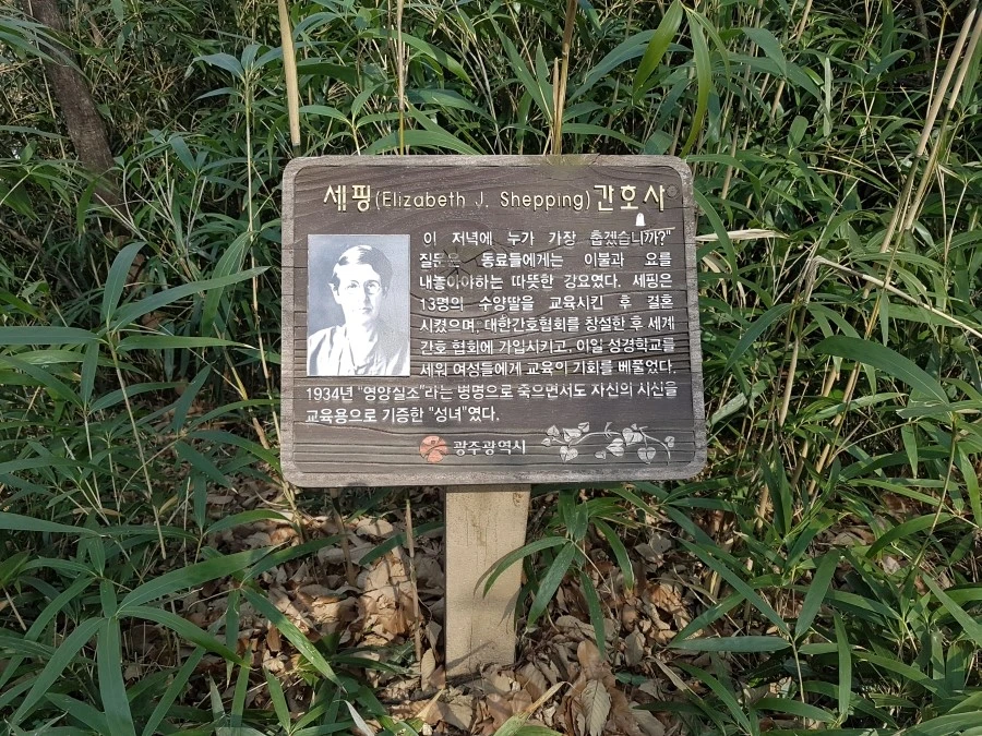<선교사 묘역으로 가는 길에 있는 서서평(쉐핑)에 대한 안내문-쉐핑길에 있다>
