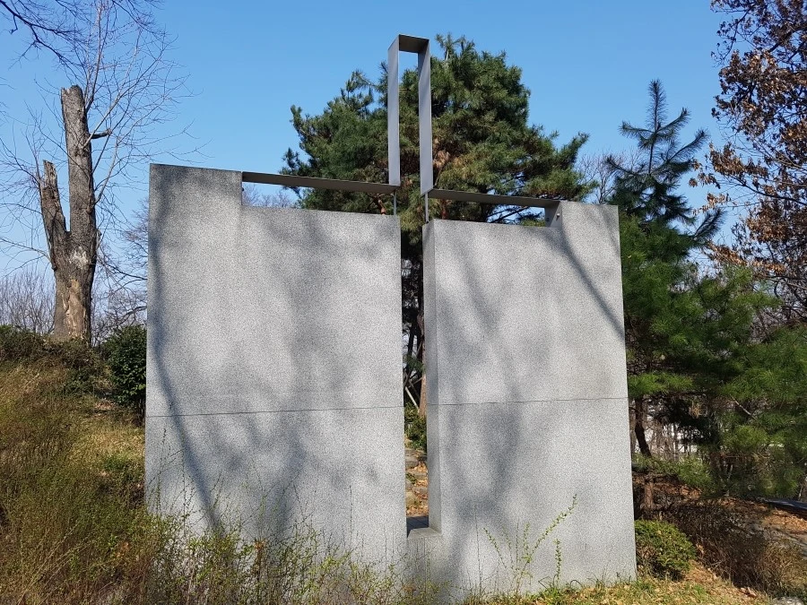 디딤돌이 시작되는 초입의 오른쪽에는 홈으로 길게 파여진 십자가가 나오고, 십자가 사이로 들어서면 비로소 선교사 묘역 안으로 들어가는 자갈길이 나온다.