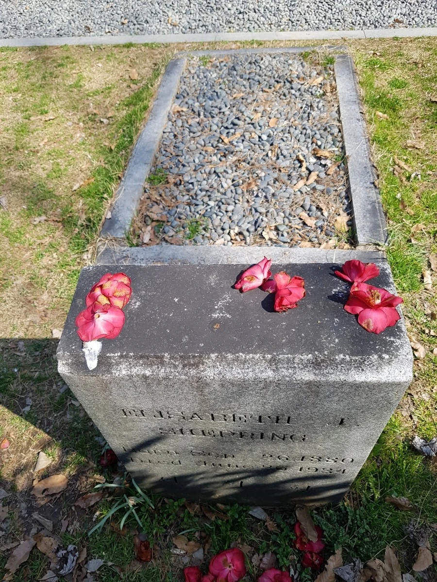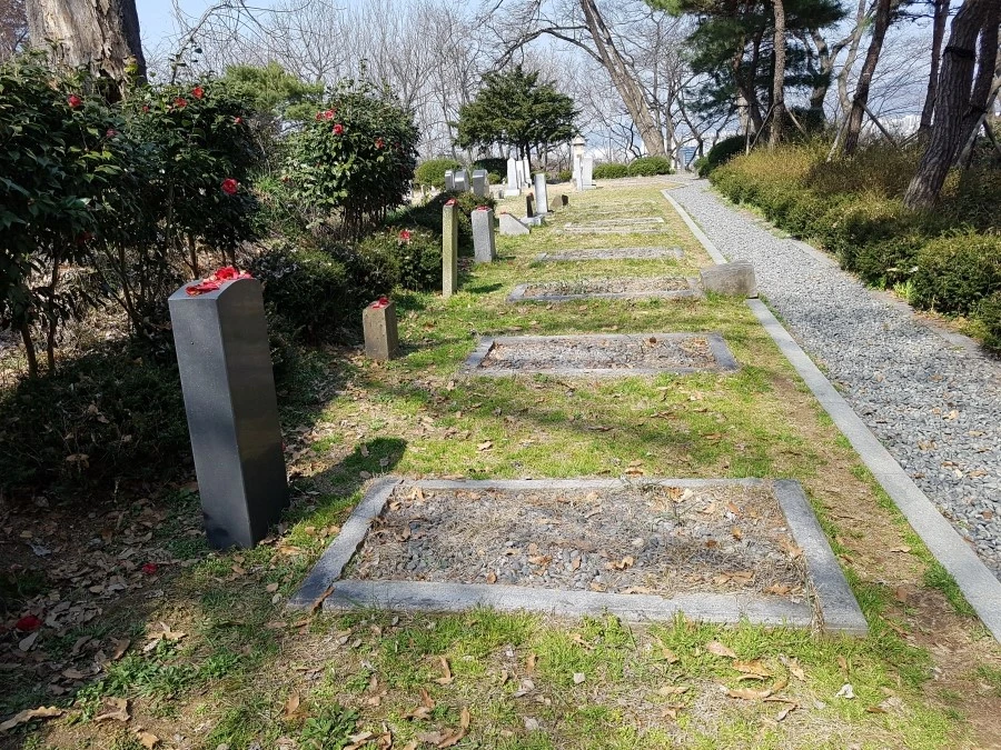 아! 이번엔 동백꽃이다. 겨울에도 푸르던 동백나무에는 빨갛게 동백꽃이 수더분하게 피었다. 동백꽃을 보니 어머니 생각이 났다. 동백기름을 바르고 참빗으로 머리를 빗어 올리신 고운 어머니의 모습이 그립다. 내 마음에서 어머니를 향한 그리움의 눈물이 뚝 떨어졌다. 내 마음을 아는 듯 동백꽃도 풀숲에 통째로 뚝 떨어져 있다. 진 꽃마저 아름다운 동백꽃이 어머니의 모습이다. 선교사의 묘비 위에 몇 송이 동백꽃이 올려져있다. 올려 진 동백 꽃송이는 누군가의 손길에 의한 것일까? 아니면 바람의 손길이었을까?