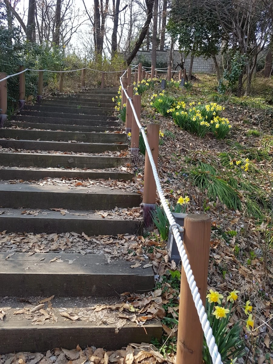 카팅톤 길을 따라 오르는 오른 쪽 풀밭에는 금빛 수선화가 줄지어 피었다. 올해 들어 처음 본 수선화라 반가웠다. 오르던 길을 멈추고 계단에 앉아 ‘안녕?’하고 인사하는 내게 수선화는 말없이 그저 고개만 갸웃거린다. 물가도 아닌 언덕 위 계단 옆에서 애타게 연못을 찾고 있는 수선화! 물 위에 비친 자신의 모습을 따라 연못 속으로 가버린 Narcissus처럼……. 말 없는 수선화를 대신해 계단을 지나 흐르던 바람이 Wordsworth의 시 수선화를 읊었다.