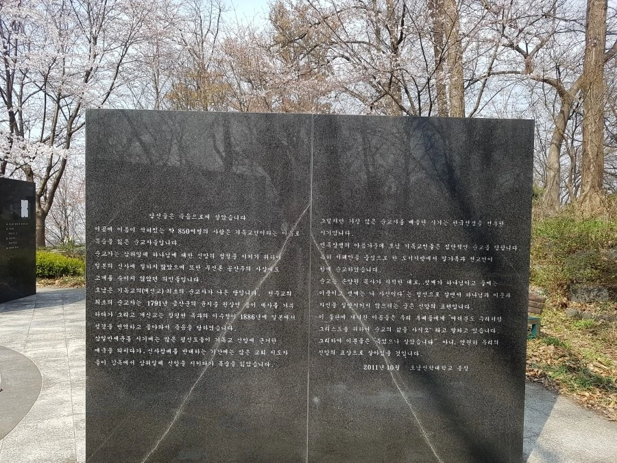 고난의 길은 65개의 커다란 사각형의 디딤돌로 구성되어 있다. 디딤돌 하나하나마다 선교사의 이름과 태어나고 죽은 년도가 새겨져 있다. 그들의 이름이 내 발자국으로 닳아 지워질까 두려워 디딤돌의 귀퉁이만 밟고 걸었다.